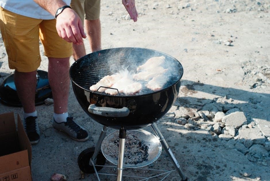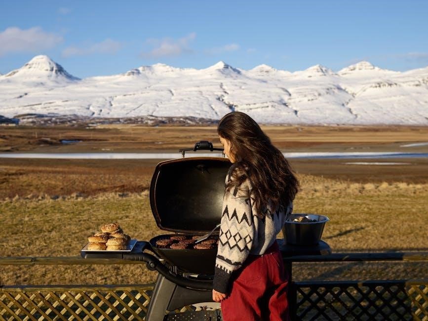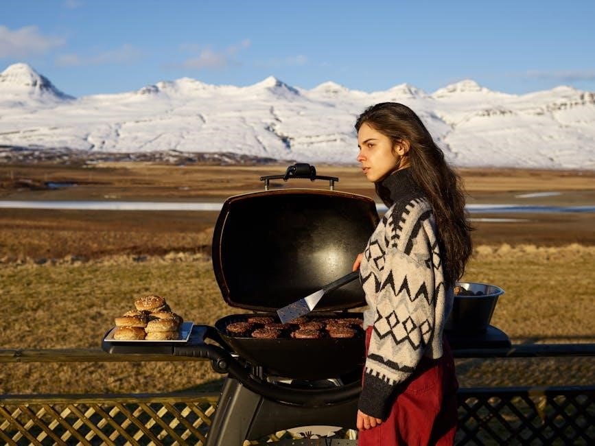 Its compact size makes it ideal for smaller patios or balconies. User guides highlight the convenient electronic ignition system for quick and reliable start-ups. Benefits include Weber’s durable construction, ensuring longevity, and readily available replacement parts, as detailed in online parts diagrams and warranty information.