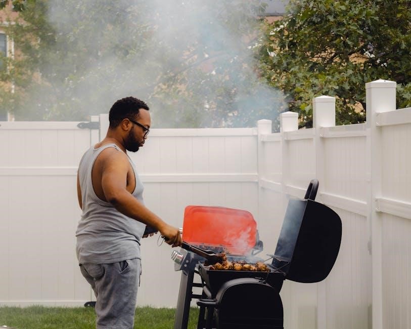 This grill typically features two burners, a porcelain-enameled cast iron cooking grate, and a convenient side table. Assembly guides, like those found as PDFs, assist with setup. It’s designed for ease of use and consistent cooking performance, making it a great entry point into the world of gas grilling.