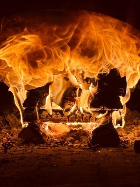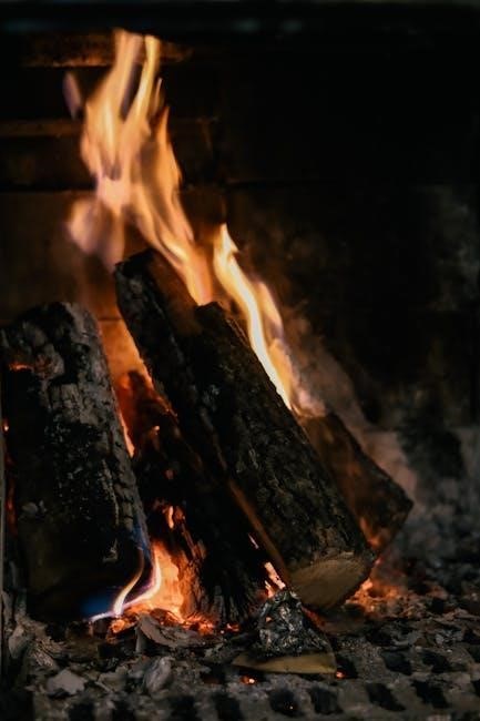 The manuals emphasize never leaving a fire unattended and provide guidance on air control adjustments for optimal heat output. PDF versions often include troubleshooting tips for common issues like smoldering or excessive smoke. Following these procedures ensures safe and enjoyable fireplace use.